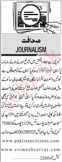 Jang Sunday Classified Ads 13 Nov 2022 for Journalism