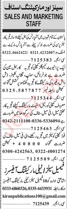 Vacant posts including marketing staff, dishwasher, sales person, marketing officer, marketing manager, sales staff, telemarketing officer, sales officer and salesman are announced in Marketing Company Lahore, lahore Punjab Pakistan as per 14 November 2022 advertisement in daily Jang Newspaper. Persons with Intermediate, Middle, Bachelor and Matric etc. education can apply.