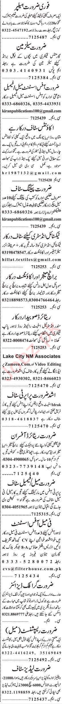 Jang Sunday Classified Ads 13 Nov 2022 For Office Staff