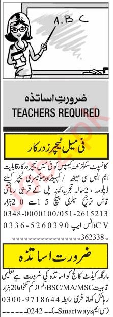 Jang Sunday Classified Ads 13 Nov 2022 For Teaching Staff