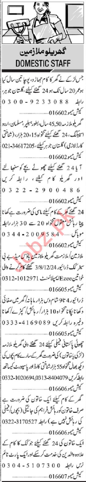 Jang Sunday Classified Ads 13 Oct 2019 For House Staff