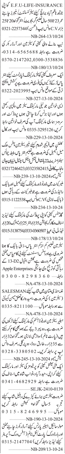 Jang Sunday Classified Ads 13 Oct 2024 for Marketing & Sales