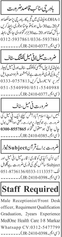 Jang Sunday Classified Ads 13 Oct 2024 For Office Staff