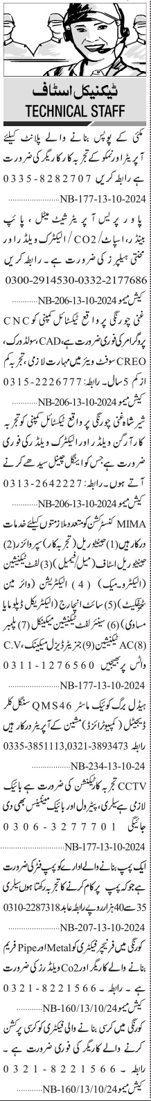 Jang Sunday Classified Ads 13 Oct 2024 For Technical Staff