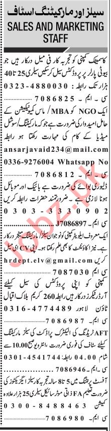 Jang Sunday Classified Ads 13 Sep 2020 For Marketing Staff