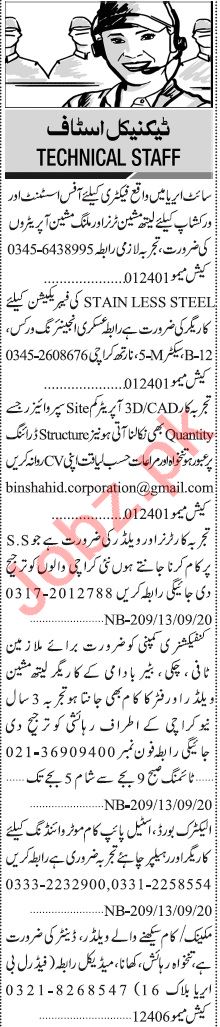 Jang Sunday Classified Ads 13 Sep 2020 For Technical Staff