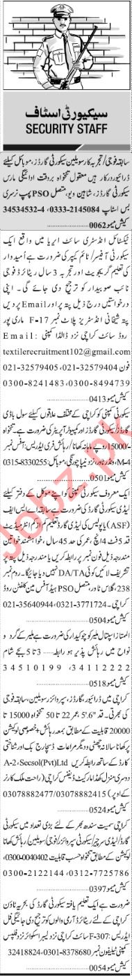 Jang Sunday Classified Ads 13th Jan 2019 For Security Staff