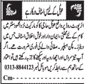 Hotel is looking for candidates for following posts as per job advertisement published in daily Jang Newspaper of December 15, 2025 for location Quetta, quetta Balochistan Pakistan: