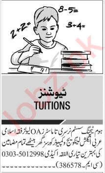 Academy jobs advertisement dated about 15 July 2024 in daily Jang Newspaper invites application for the vacant post of a level teacher, teacher, o level teacher, english language teacher and nursery teacher in Islamabad, islamabad Islamabad Pakistan. Persons with Bachelor and Master etc. education can apply.