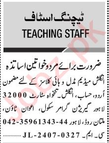 Vacant posts including teacher, urdu teacher, english teacher, mathematics teacher and female teacher are announced in Lahore Grammar School Lahore, lahore Punjab Pakistan as per 15 July 2024 advertisement in daily Jang Newspaper. Master, MA, Bachelor and M.sc etc. educational qualification will be preferred.