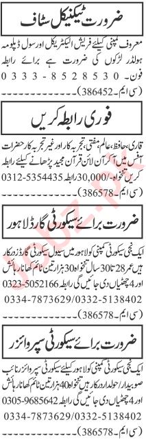 Private Company Islamabad, lahore Islamabad Pakistan invites applications from eligible candidates for the post of havaldar, technical staff, electrical diploma holder, security guard, mufti, security supervisor, civil diploma holder, qari, naib subedar, teacher, quran teacher and hafiz as per advertisement of July 15, 2024 published in daily Jang Newspaper. Candidates with Intermediate, DAE, Bachelor, BA, Middle and Matric etc. educational background will be preferred.