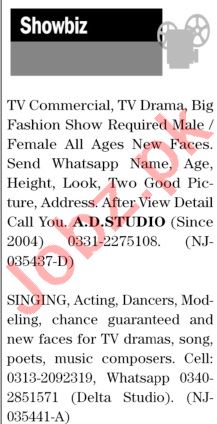 Jang Sunday Classified Ads 14 March 2021 For Showbiz