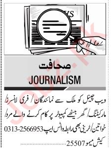 Advertising Agency jobs advertisement dated about 15 May 2023 in daily Jang Newspaper invites application for the vacant post of reporter, freelancer and news reporter in Karachi, karachi Sindh Pakistan. Matric and Intermediate etc. educational qualification will be preferred.