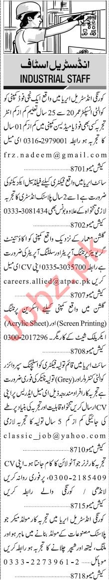 Jang Sunday Classified Ads 14th Feb 2021 Industrial Staff