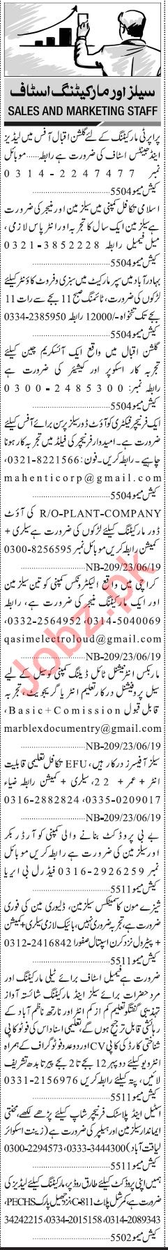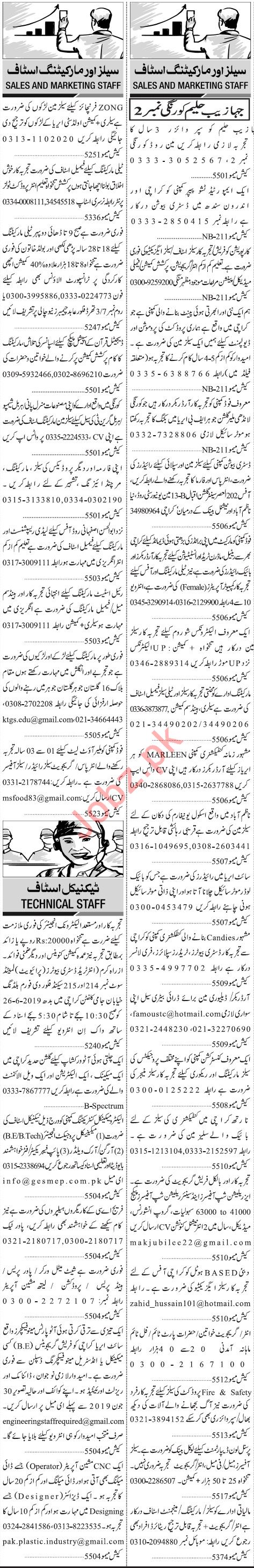 Jang Sunday Classified Ads 14th July 2019 Marketing Staff