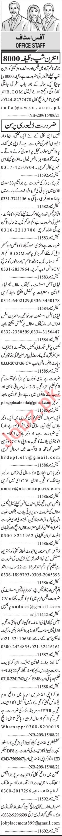 Jang Sunday Classified Ads 15 August 2021 For Management