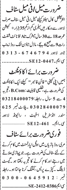Private Company is looking for candidates for following posts as per job advertisement published in daily Jang Newspaper of December 16, 2024 for location Lahore, murree Punjab Pakistan: