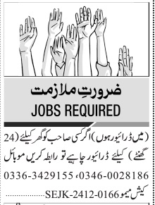 Jang Sunday Classified Ads 15 Dec 2024 For Driving Staff