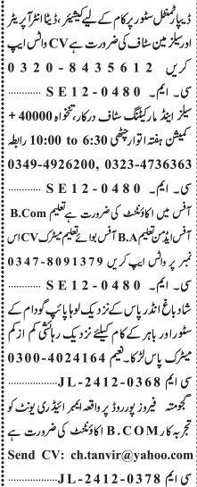 Candidates with B.com, Bachelor, Matric, Intermediate, Middle, I.com and BA etc. educational background will be preferred.