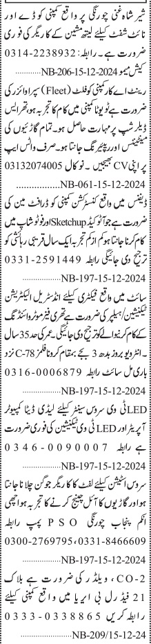 Jang Sunday Classified Ads 15 Dec 2024 For Manufacturing