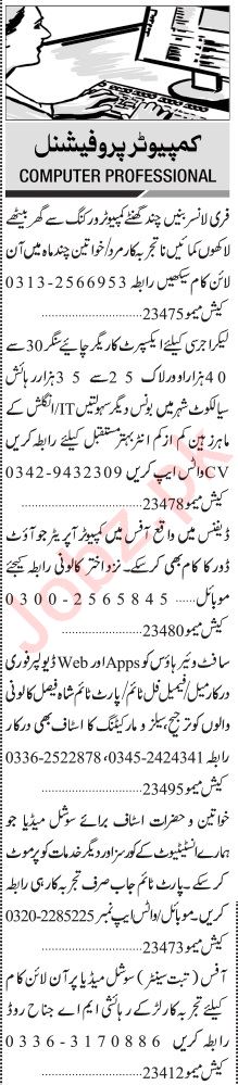 Jang Sunday Classified Ads 15 Jan 2023 for Computer Staff