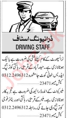 Jang Sunday Classified Ads 15 Jan 2023 For Driving Staff