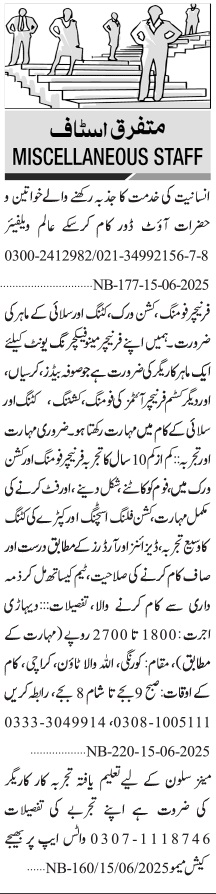 Jang Sunday Classified Ads 15 June 2025 For Miscellaneous
