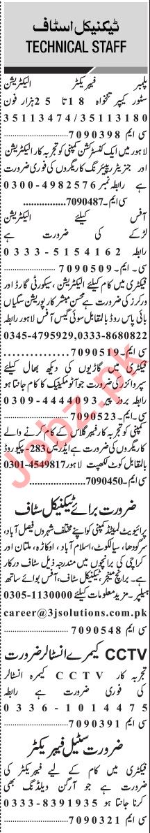 Jang Sunday Classified Ads 15 Nov 2020 For Technical Staff