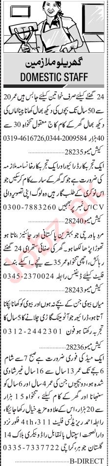 Jang Sunday Classified Ads 15 Oct 2023 For Domestic Staff