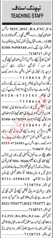Jang Sunday Classified Ads 15 Oct 2023 For Teaching Staff