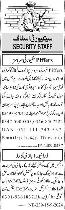 Jang Sunday Classified Ads 15 Sep 2024 For Security Staff