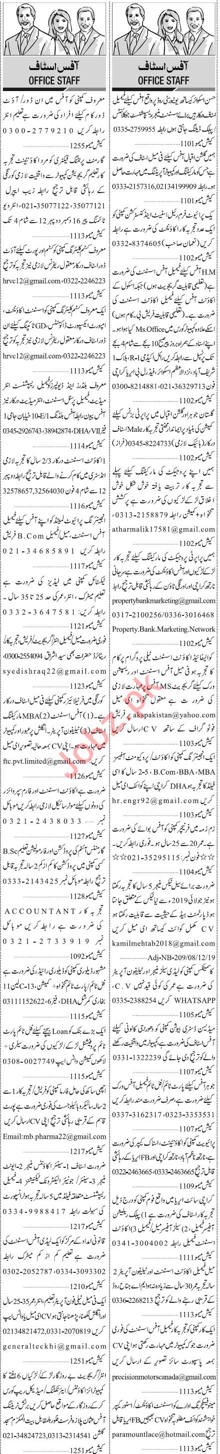 Jang Sunday Classified Ads 15th Dec 2019 for Office Staff