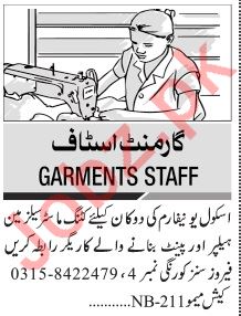 Jang Sunday Classified Ads 15th Sep 2019 for Garments Staff