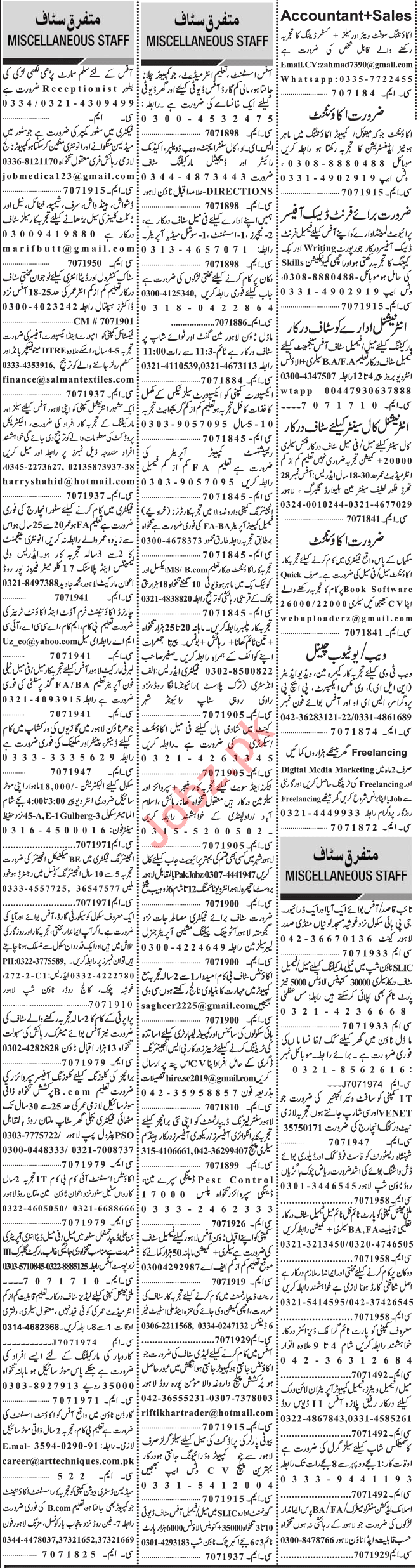 Jang Sunday Classified Ads 15th Sep 2019 For General Staff