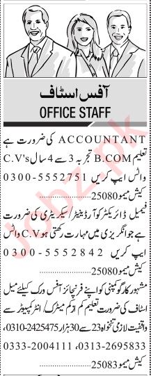 Jang Sunday Classified Ads 16 April 2023 for Office Staff