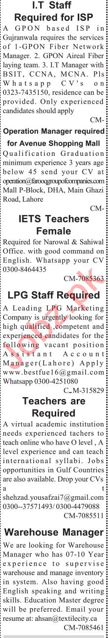 Jang Sunday Classified Ads 16 Aug 2020 For Management