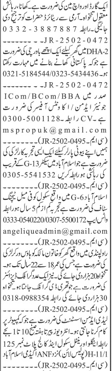 Private Company is looking for candidates for following posts as per job advertisement published in daily Jang Newspaper of February 17, 2025 for location Saddar Rawalpindi, islamabad Punjab Pakistan: