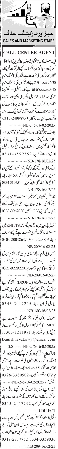 Jang Sunday Classified Ads 16 Feb 2025 for Sales & Marketing