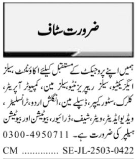Private Project is looking for candidates for following posts as per job advertisement published in daily Jang Newspaper of March 17, 2025 for location Multan, multan Punjab Pakistan: