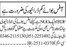 Vacant posts including office boy and driver are announced in Rural Development Foundation RDF Islamabad, islamabad Islamabad Pakistan as per 17 November 2025 advertisement in daily Jang Newspaper. Educational qualifications required Matric and Middle etc.