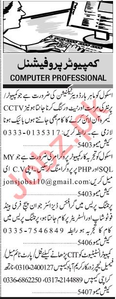 Jang Sunday Classified Ads 16th June 2019 For Computer Staff
