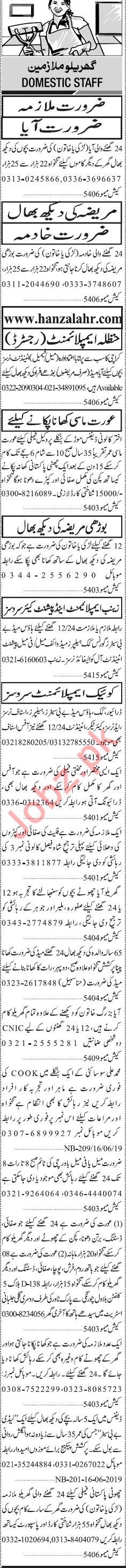 Jang Sunday Classified Ads 16th June 2019 For House Staff