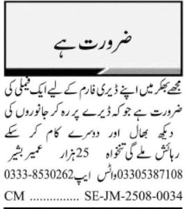 Jang Sunday Classified Ads 17 Aug 2025 For Dairy Farm