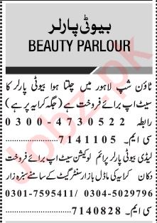 Jang Sunday Classified Ads 17 Dec 2023 For Beauty Parlor