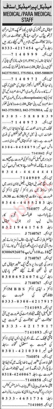 Jang Sunday Classified Ads 17 Dec 2023 for Paramedical Staff