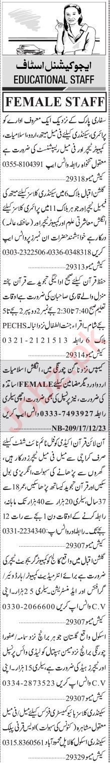 Jang Sunday Classified Ads 17 Dec 2023 for Sales Staff
