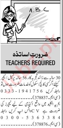 Jang Sunday Classified Ads 17 Dec 2023 For Teaching Staff
