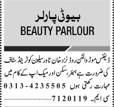 Latest Beauty Parlor Business Staff Posts Lahore 2025