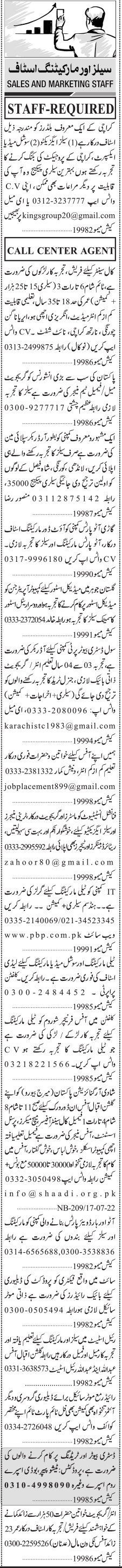 Jang Sunday Classified Ads 17 July 2022 For Marketing Staff