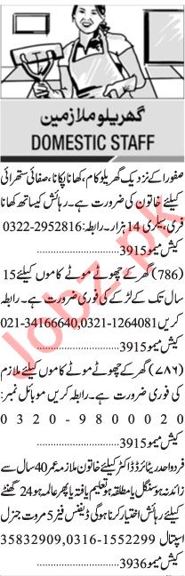 Jang Sunday Classified Ads 17 May 2020 For House Staff